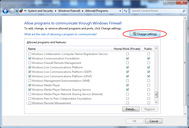 - Find "iSyncr" or "iSyncrWiFi" in the list and check both "Home/Work (Private)" and "Public". Click "OK". Go back to previous page.